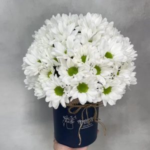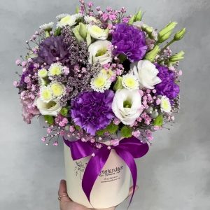 Букет в шляпной коробке с французской розой и пион кустовой розой